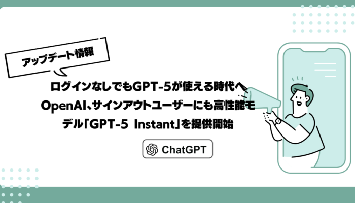 OpenAI、サインアウトユーザーにも高性能モデル「GPT-5 Instant」を提供開始OpenAIが、ログインしていないユーザー(サインアウト状態)にも、最新の高性能モデル「GPT-5