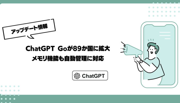 2025年10月14日、OpenAIはChatGPT Goの提供地域を71か国追加し、合計89か国で利用可能になったことを発表しました。また、ChatGPTの「メモリ」機能についても、自動管理を含む