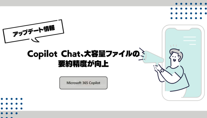 アップデート日時:2025年9月上旬2025年9月のアップデートで、Copilot Chat における大容量ファイル対応の強化が行われました。これにより、これまで扱いづらかった数百ページ規模