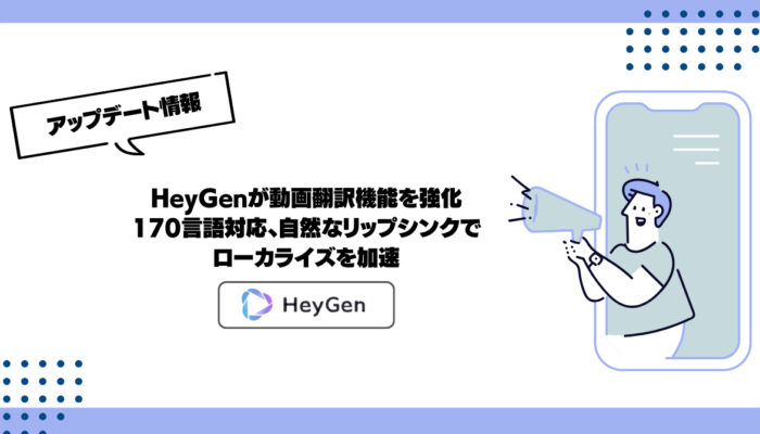 2025年11月発表|動画AIツール「HeyGen」アップデート情報AIを活用した動画制作ツール「HeyGen」が、翻訳・吹き替え機能を中心に機能強化を行いました。これにより、170以上の言