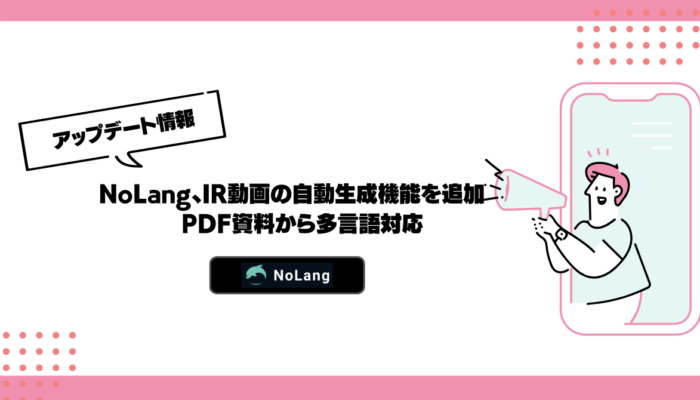 2025年11月2日発表|株式会社Mavericks株式会社Mavericks(東京都文京区)が提供する動画生成AI「NoLang(ノーラング)」に、IR(投資家向け広報)動画を自動生成でき